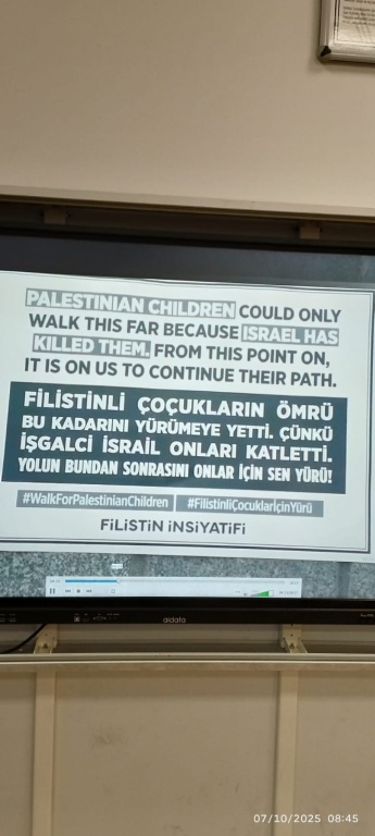 "Bu anlayışla, Millî Eğitim Bakanlığı olarak 81 ilimize gönderdiğimiz yazı doğrultusunda, yarın tüm okullarımızda eşzamanlı olarak öğrencilerimizin katılımıyla Filistin ve Gazze temalı farkındalık etkinlikleri düzenleyeceğiz. Amacımız, çocuklarımıza sadece bilgi kazandırmak değil, vicdanı, adaleti ve insan olmanın sorumluluğunu da öğretmek. Çünkü insanın içindeki iyilik yeşermedikçe, hiçbir bilgi meyve vermez. Türkiye Yüzyılı Maarif Modeli'nin merkezinde yer alan 'Erdem-Değer-Eylem' anlayışıyla barışa, insan haklarına ve evrensel değerlere saygılı bir nesil yetiştirmeye kararlıyız. Filistin ve Gazze'de yaşanan acılara duyarsız kalmadan, insanlık onurunu savunma bilincini çocuklarımızda yaşatmak hepimizin ortak görevi. Bu anlamlı sürece yürekten destek verecek tüm öğretmenlerimize, yöneticilerimize, velilerimize ve öğrencilerimize şimdiden teşekkür ediyorum."